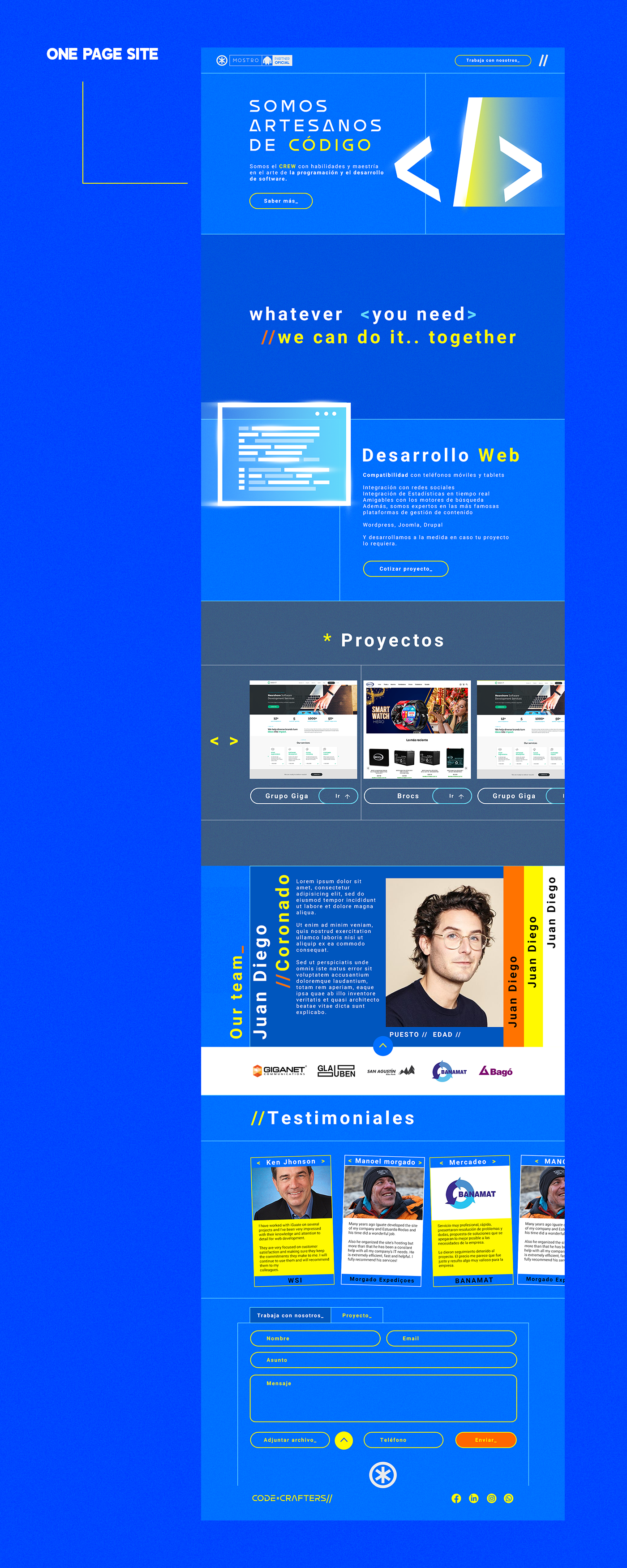 Diseño web para una empresa especializada en desarrollo web y software, destacando su enfoque en la innovación tecnológica y la excelencia en la programación. El sitio está diseñado para reflejar la maestría del equipo en la creación de soluciones personalizadas, optimizadas para cumplir con las necesidades específicas de sus cliente